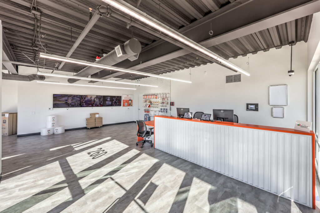 Constructed using Type IIB light-gauge steel framing, a structural system commonly used in multi-story self-storage, the facility is poised for long-term durability and efficiency. Due to grade changes along the property boundary, ARCO/Murray harnessed their design-build expertise and constructed a double-tiered retaining wall, stabilizing the elevation transition and maximizing usable site area.